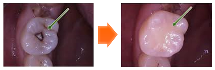 虫歯で軟らかくなった歯を硬くし、同時に歯の表面の耐酸性を増し、虫歯菌(ミュータンス菌)を殺菌し、歯を強化します。大人の永久歯だけではなく、お子様の乳歯にも効果が高いです。